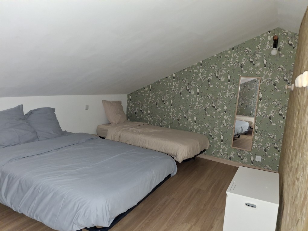 - Une chambre mansardée avec 1 lit 140, 2 lits 90.